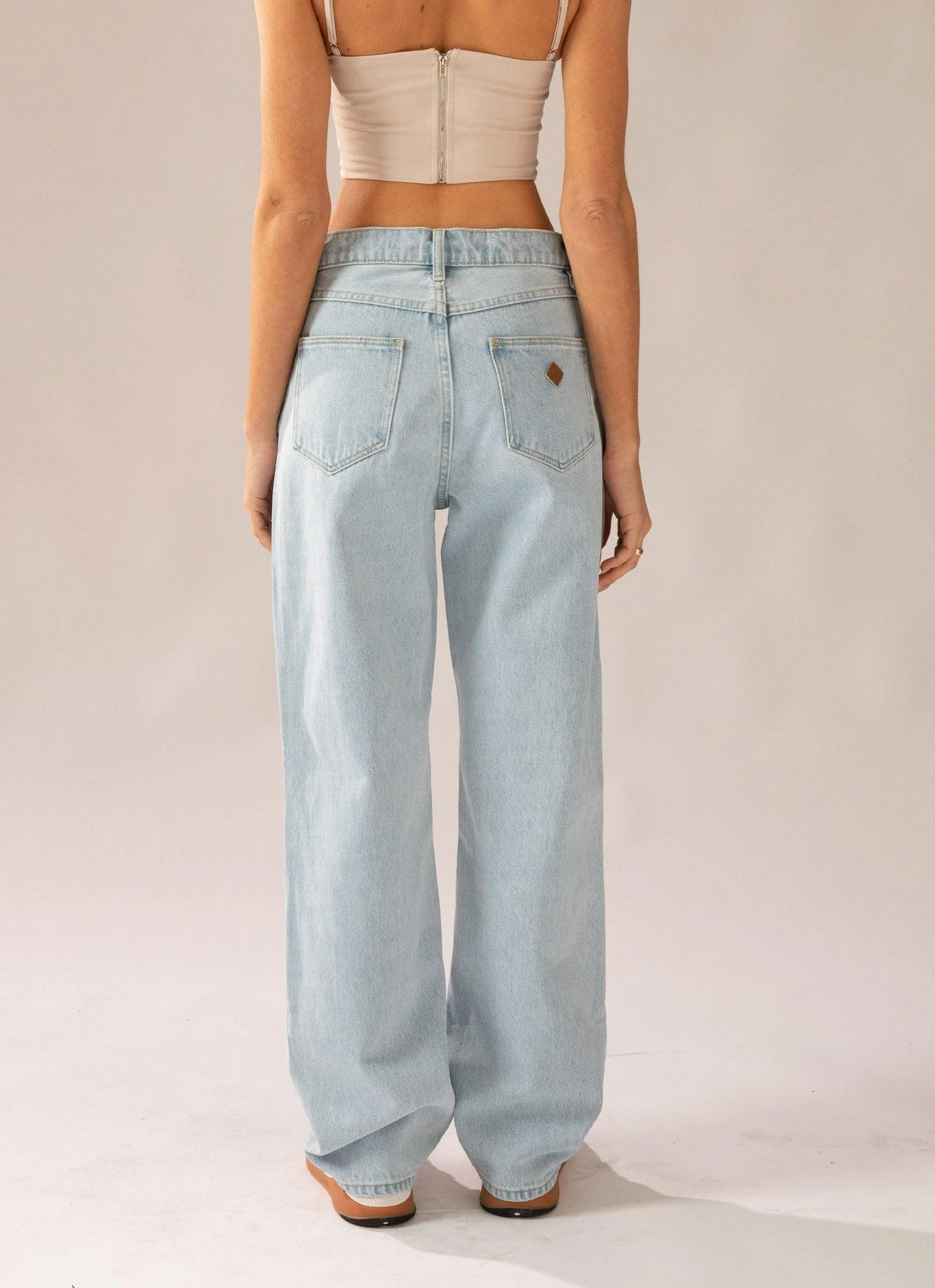 The A Slouch Jeans by Abrand are a baggy fit, mid rise jean. This style is a light blue bleached colour way with rips on the knees and upper leg. Featuring five-pocket styling, branded hardware, zip fly with button closure and signature Abrand patch at reverse.