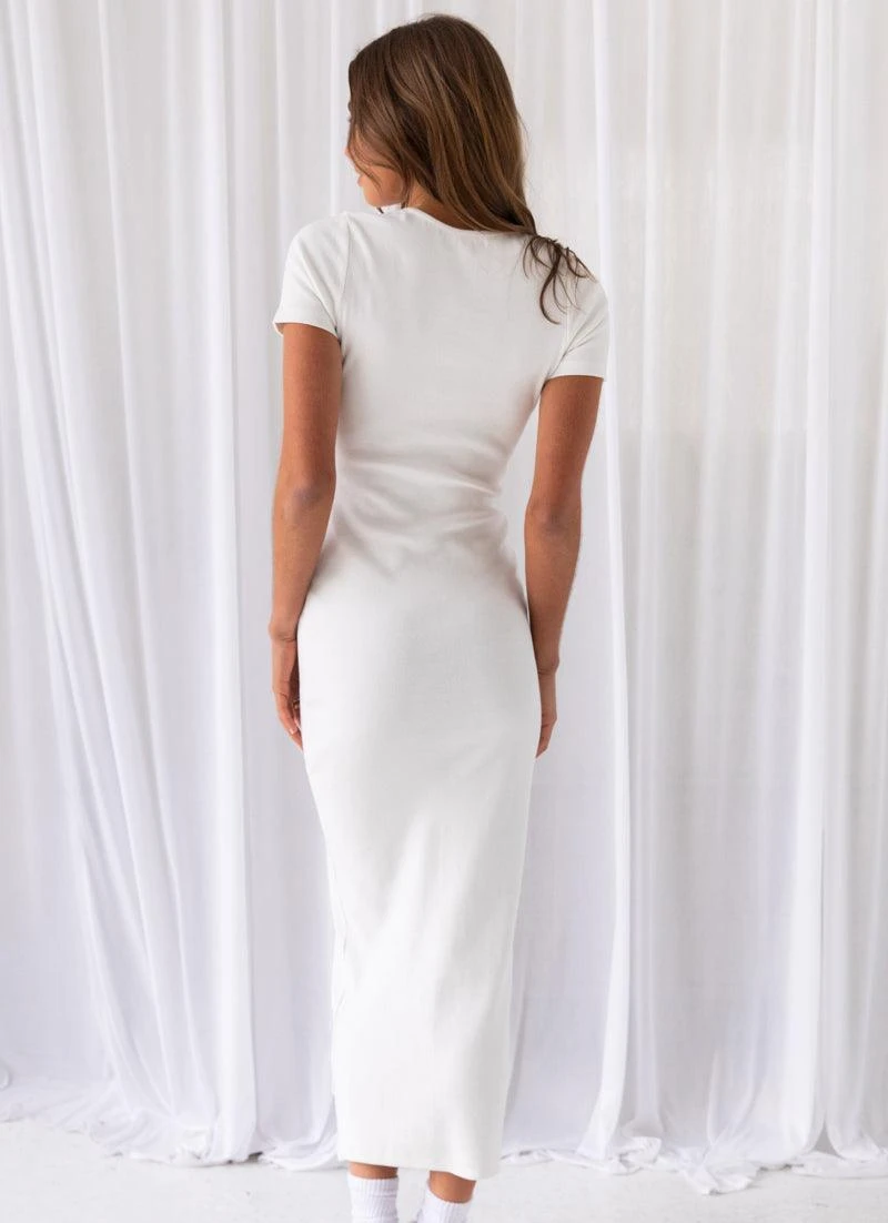 Effortlessly cool in the Being Organic Cotton Rib Tee Maxi Dress. Made for the everyday it girl, this bodycon maxi dress has been crafted in premium thick ribbed organic cotton with t-shirt sleeve styled with a simple round neck.