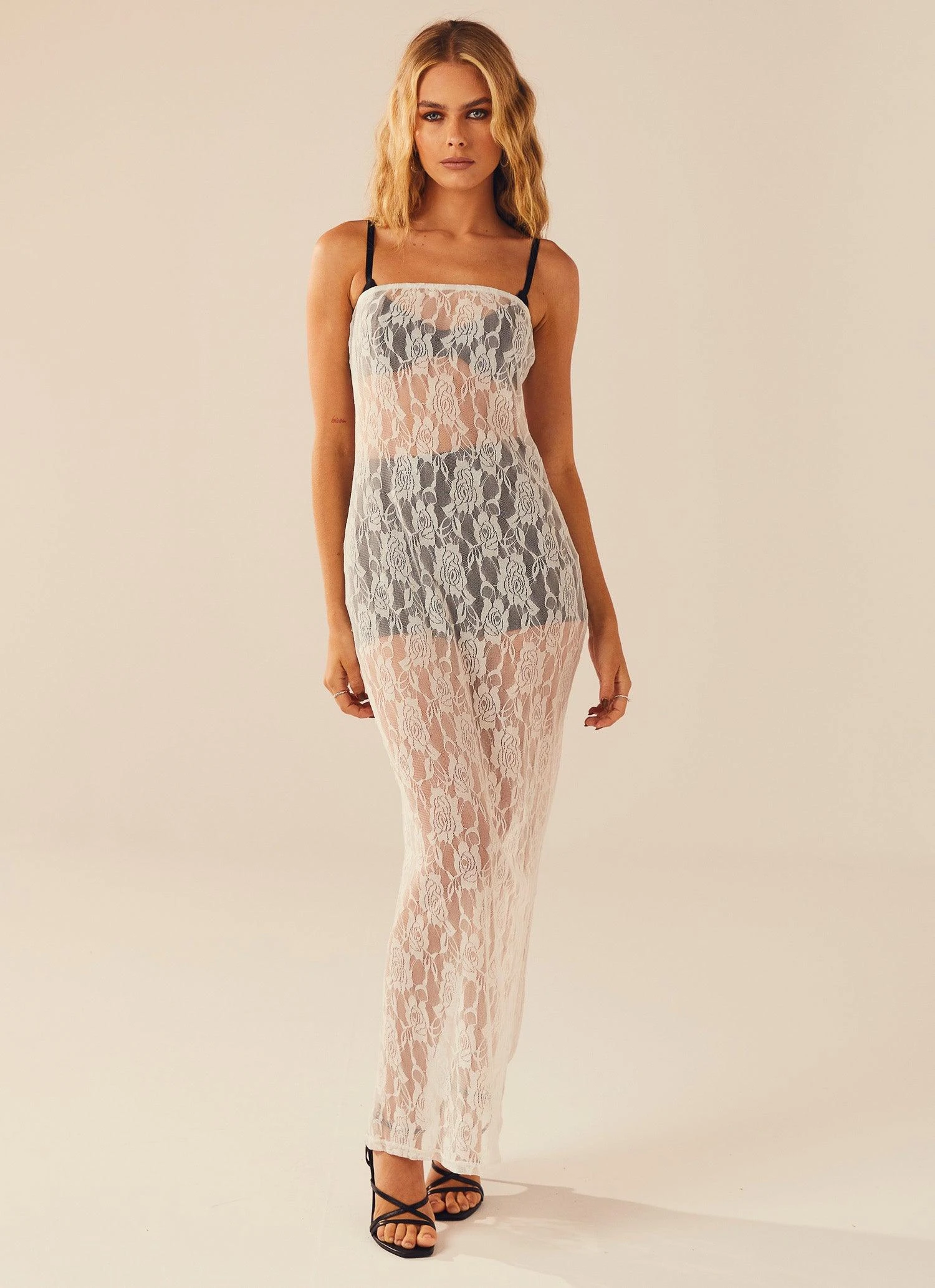 Inspired by Miss Kimberly Kardashian, this sheer lace number features a strapless neckline and loose fit. We love this paired with the Méline Mesh Bra, Esmée Mesh Briefs and Delphine Mesh Shorts.