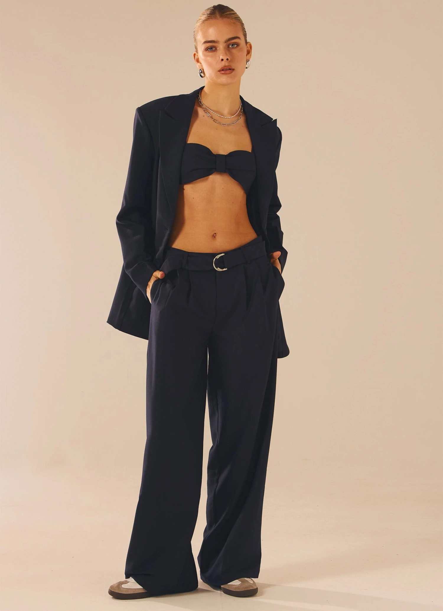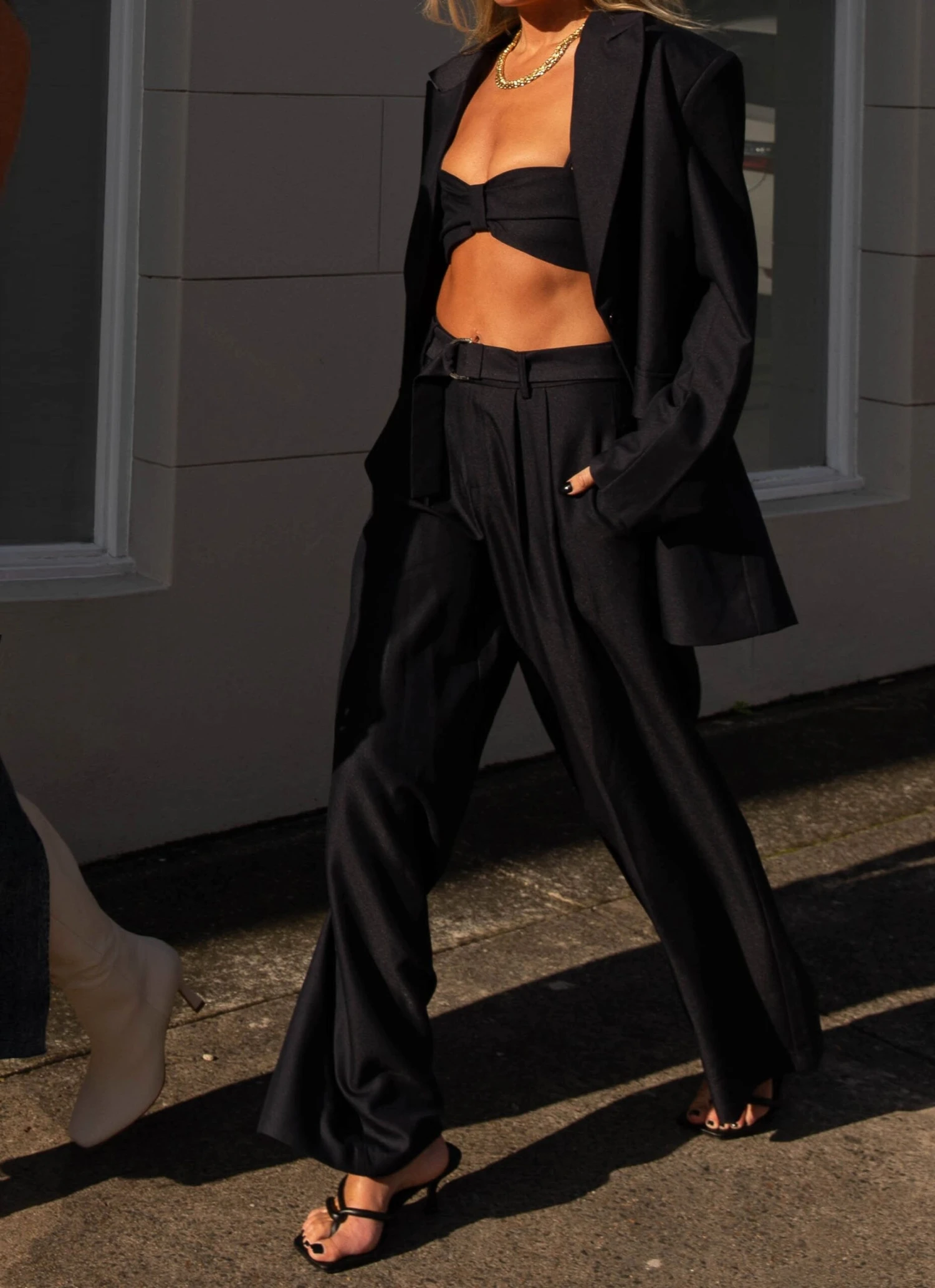 These incredibly timeless and versatile pants will be your go-to pant in your everyday wardrobe! The City Slicker Suit Pants have been designed to either be worn on the waist or the hips for a more slouchy fit. Best styled with the City Slicker Oversized Blazer and Bandeau Top.