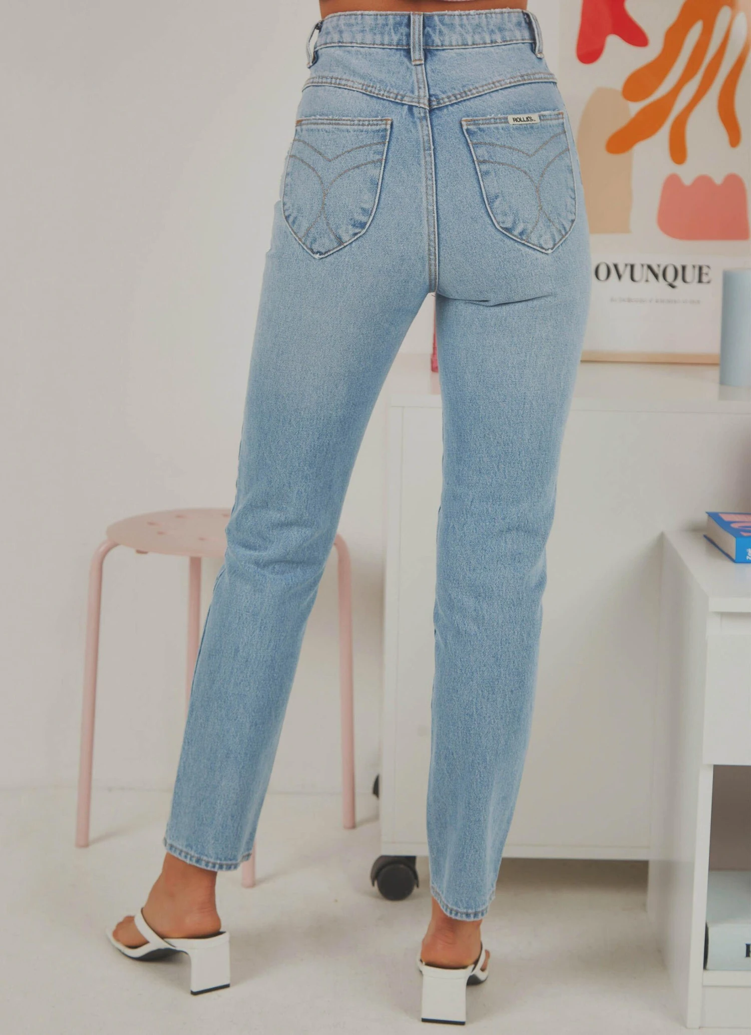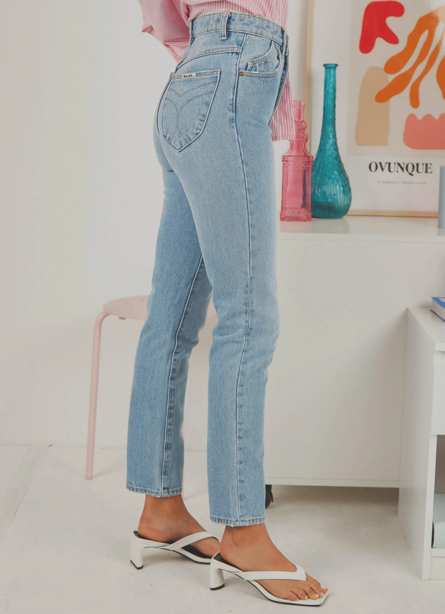 The Dusters are a signature Rolla’s fit and are cut to a skinny silhouette with a 30cm high rise waistline and 72cm ankle length tapered leg profile. Featuring a classic back pocket with Rolla’s dec stitch embroidery, every detail has been angled for the most flattering fit. This style is designed to be worn tight and will soften and shape with wear. Pair them with a neutral mule and soft blouse for a confident look that will you through a busy day.