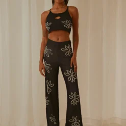 Put the jeans away for the day. Our Floral Takeover Knit Pants are as comfy as there are cute. Pair with a cropped baby tee and chunky sneakers.