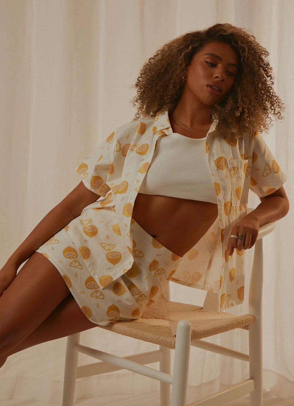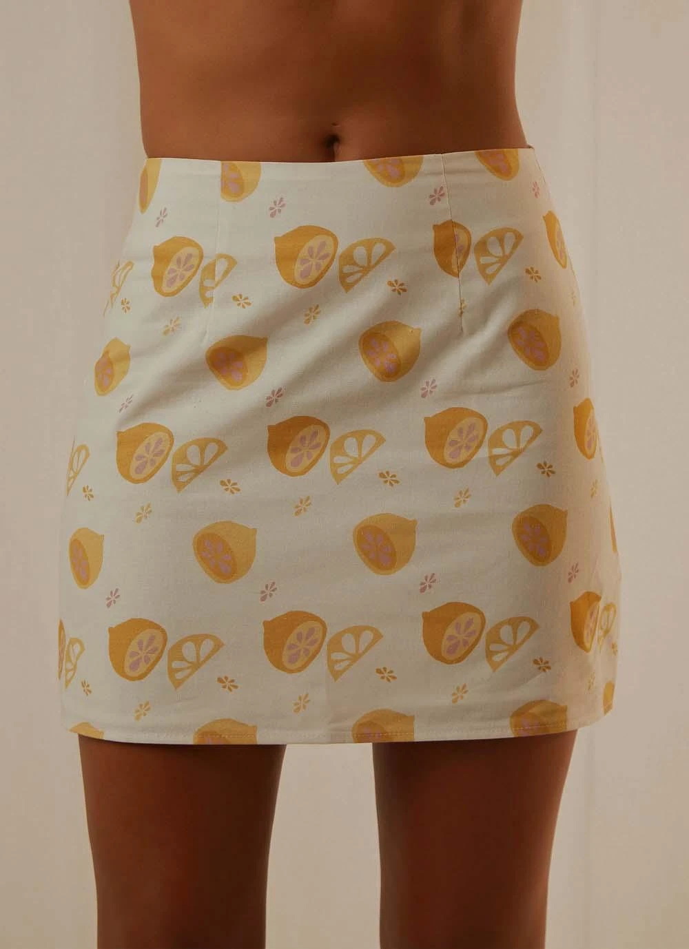This lil mini skirt is giving us all the 70’s summer vibes, baby! Pair it with the matching Fruit Bowl Shirt and white heeled mules to complete the look.