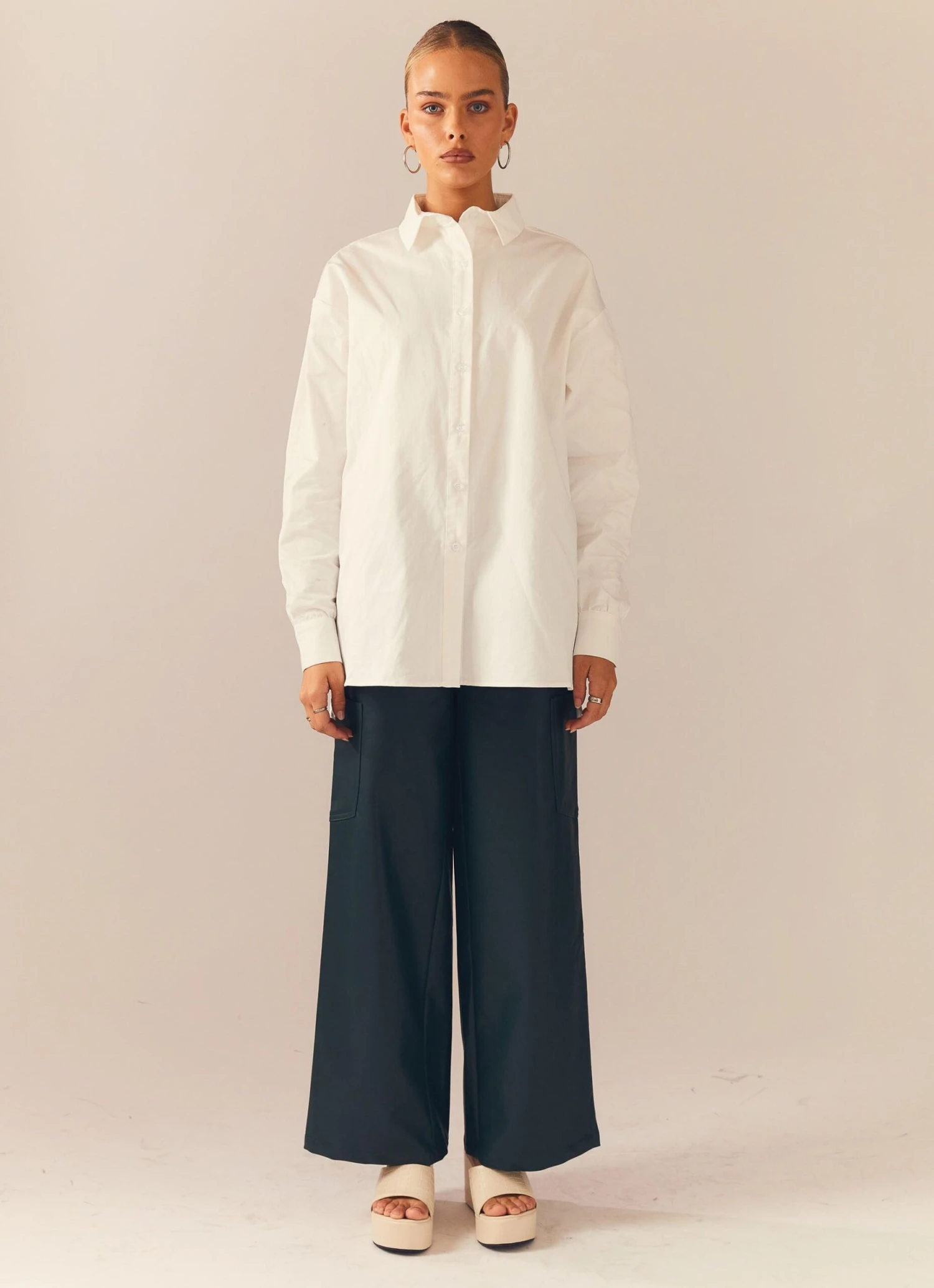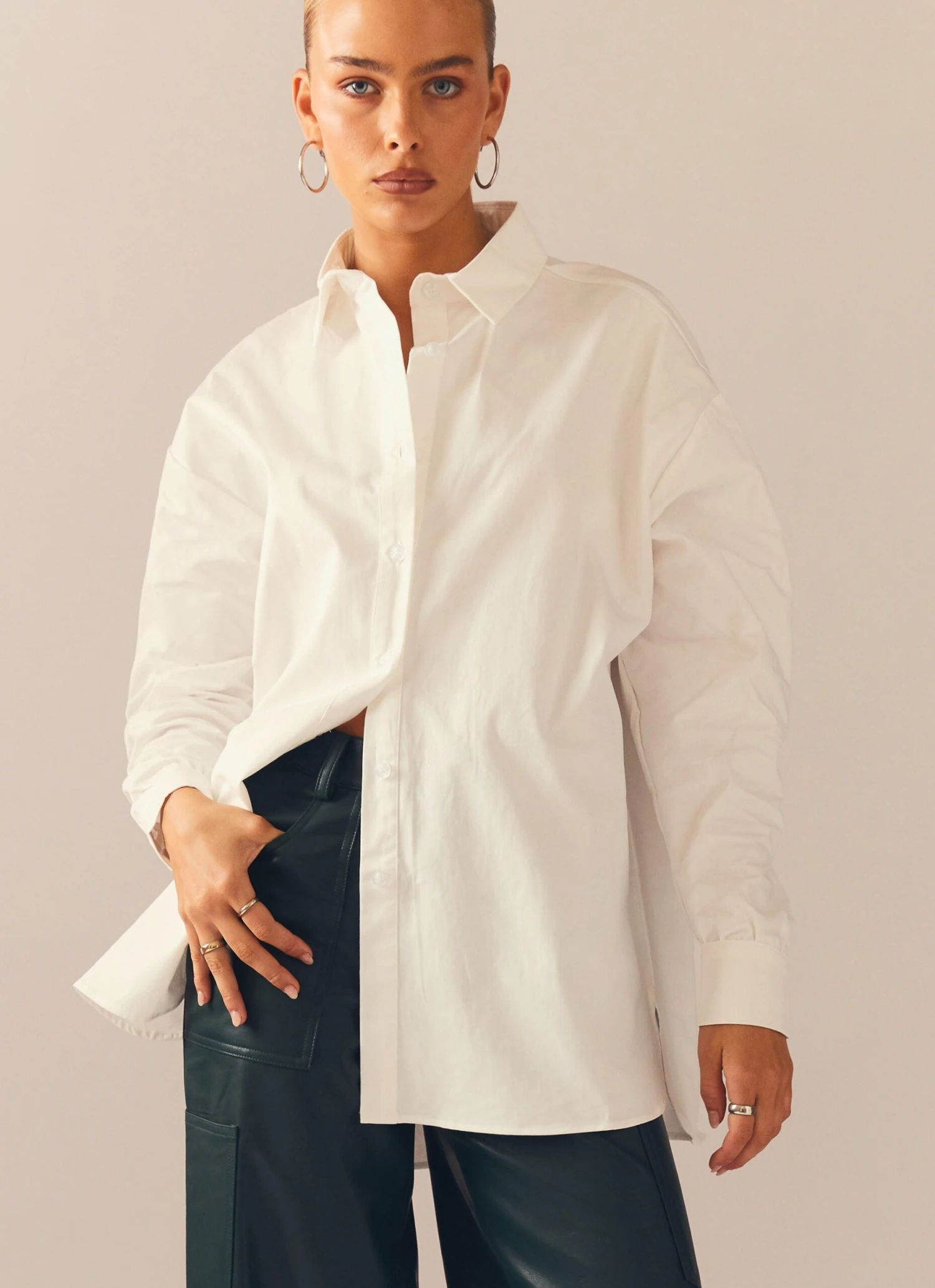 A wardrobe staple! The Glacier Oversized Shirt is the versatile piece you’ll have on contrast rotation. Crafted in soft, breathable cotton, this relaxed fit button down shirt features drop shoulders with rounded hemline. We love it styled back with the Ice Glider Pant and chunky gold jewellery.