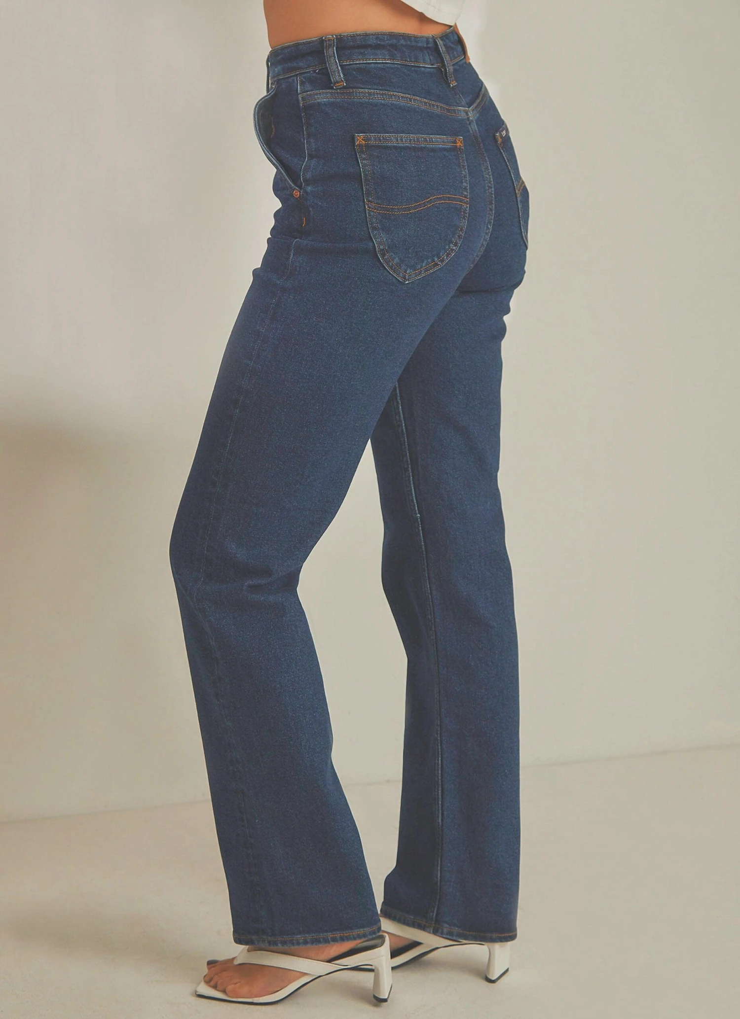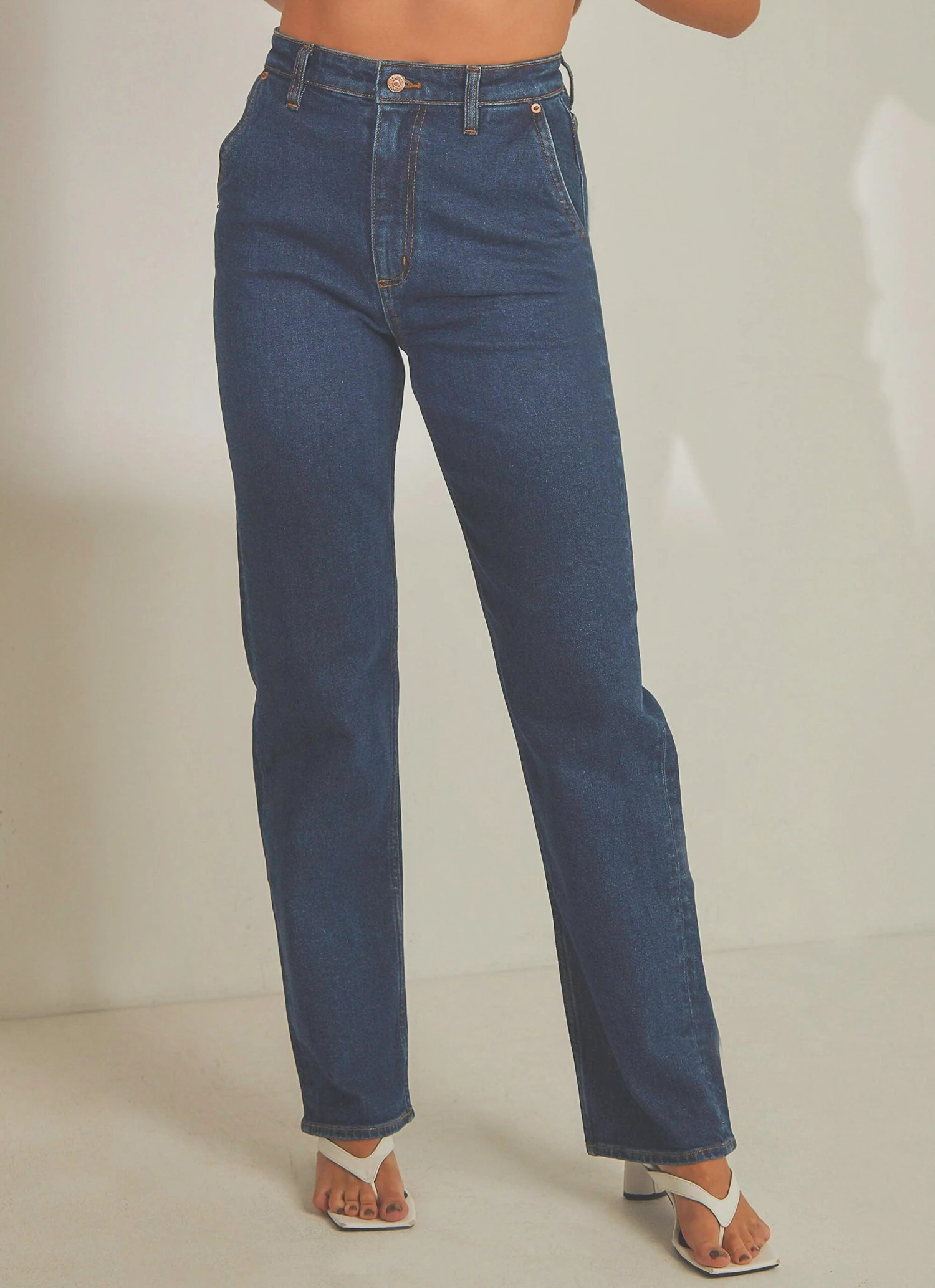 The High Straight 80 Capital Rinse jean is a super high rise, fitted top block with a slim straight leg that also features a longer 80cm inleg.