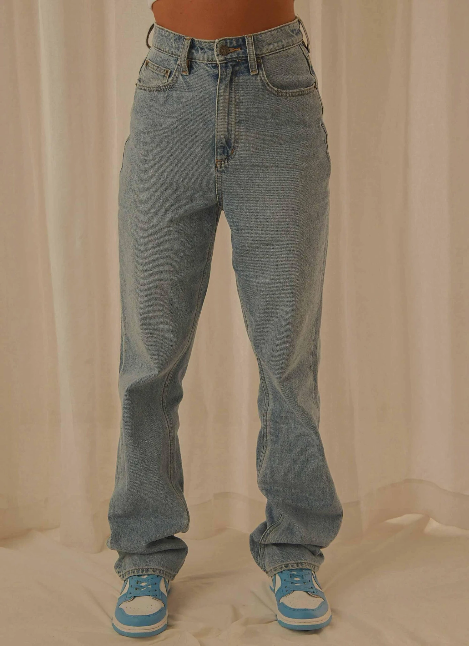 Your new fave jeans are here! The High Straight 80 is a super high rise fitted top block jean with a slim relaxed straight silhouette. Crafted in a mid-blue stonewash with authentic high twill, rigid denim for a subtle worn-in appearance.