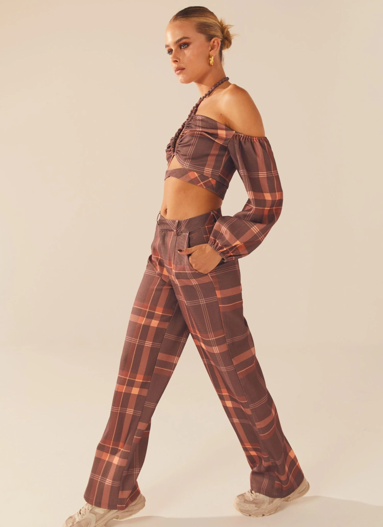 So on trend it hurts! We can’t get enough of this warm chesnut tartan moment. This effortless suit pant is perfect for the office and drinks with the girls. We love this paired the matching Lose My Cool Crop Top for a chic moment that does all the talking for you.