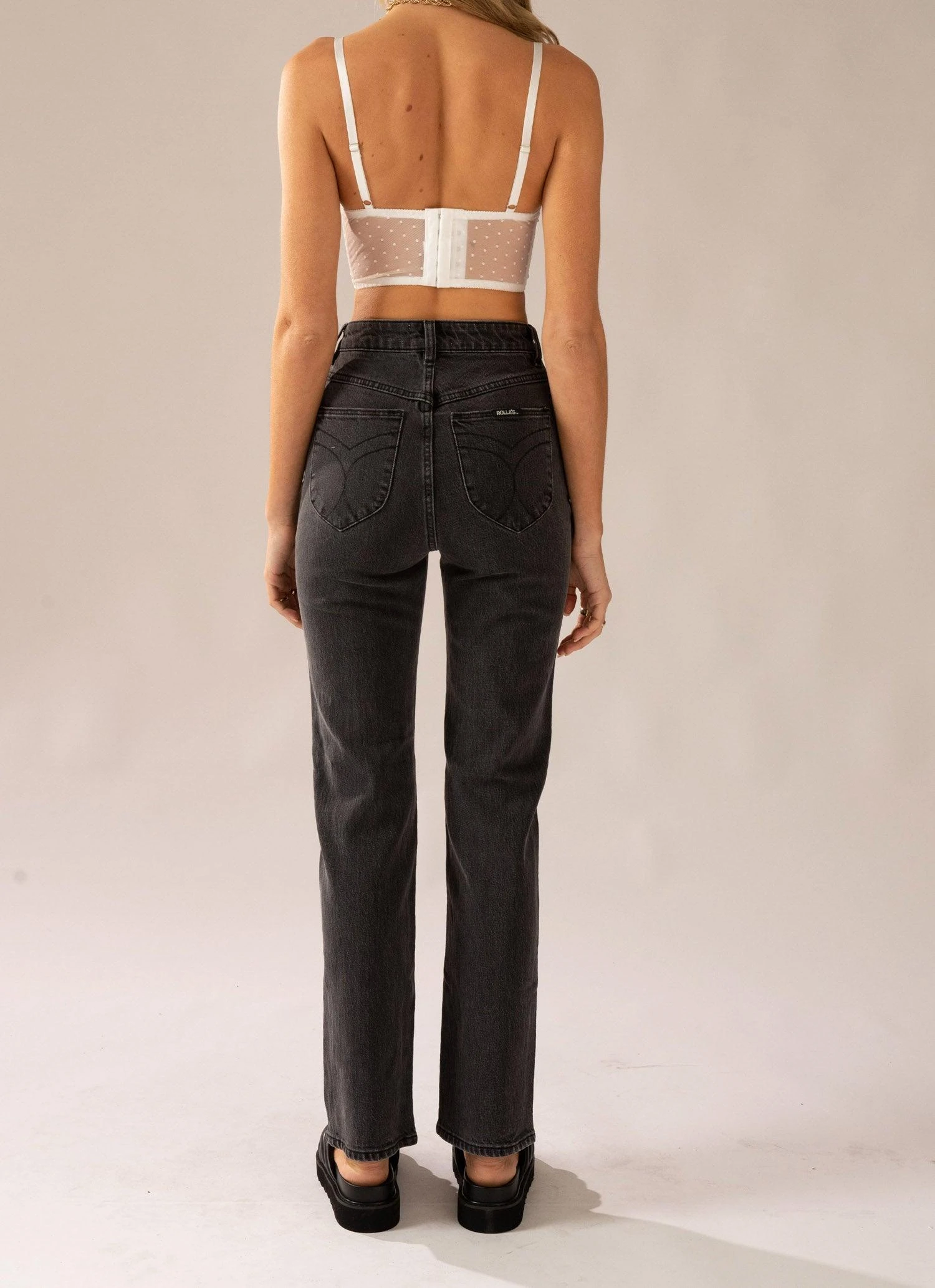 The Original Straight Jeans by Rolla’s are designed with a straight leg profile and come in a black colourway. This style is high rise and features five pocket styling, belt loops, branded hardware and a zip fly with button closure. This denim is designed to be worn tight and will soften to shape the body with wear for a natural, effortless fit.